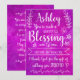Rappelez à une amie quelle bénédiction elle est dans votre vie avec ce design de typographie au style de lettrage manuscrit élégant. Le devant de la carte comporte un message en blanc, "Vous êtes une merveilleuse bénédiction pour tous ceux qui vous connaissent et je remercie Dieu pour le cadeau de vous appeler AMIE. !" Le design apparaît sur un fond aquarelle violet texturé numériquement et comprend de multiples ornements et accents dessinés à la main (cœurs, papillon, fleurs, lauriers, etc.). L'intérieur comprend ce message, mais peut être personnalisé pour répondre à vos propres besoins : Vous êtes un cadeau incroyable pour tous ceux qui vous connaissent, en particulier moi. Je suis si reconnaissant d'avoir une amie comme vous. Que Dieu vous bénisse abondamment dans l'année à venir et toujours !