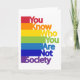 Cette oeuvre colorée comporte une inscription "Vous savez qui vous êtes, pas la société". Un concept LGBT, la liberté et la lutte pour les droits homosexuels.
