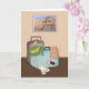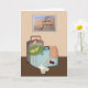 Cette carte de voyage de fève d'amusement a mon image de deux valises emballées, d'un casquette de plage, d'une écharpe de sarongs, et des bascules électroniques. Derrière eux, comme si elle est une photo accrochant sur un mur est une scène d'une plage avec un coeur dessiné dans le sable. Vous pouvez éditer tout les texte.