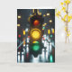 Une lumière jaune éclatante dans un feu de circulation suspendue au-dessus d'une rue de ville sombre pour penser à vous. Le texte est modifiable.