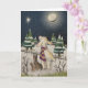 Un agneau regarde vers le haut par une nuit étoilée d'hiver.