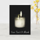 Il n'est pas facile de consoler quelqu'un qui a perdu un membre de sa famille ou un ami ; et je ne suis pas meilleur que quiconque. Que dis-tu ? Je propose cette carte, aussi inadéquate soit-elle, représentant une bougie de yahrzeit, bougies de Yahrzeit, parfois appelées bougies commémoratives (hébreu : נ ר נ מ ש, près de neshama, signifiant "bougie de l'âme" ; sont allumées en mémoire des morts. Yahrzeit est originaire de Jahr allemand, année, et Zeit, temps. La bougie est allumée pendant la semaine de Shiva (deuil). Il est également éclairé au coucher du soleil à la veille du yahrzeit (anniversaire de la mort). La coutume d'allumer une bougie de yahrzeit pour le défunt est très répandue et profondément enracinée dans la vie juive. Il est d'usage d'allumer la bougie, qui brûle jusqu'à 26 heures, à l'intérieur de sa maison, ou près de la tombe du défunt. La bougie est également allumée sur Yom Kippour et il ya aussi des coutumes pour allumer une bougie yahrzeit aux dates où yizkor est dit (Yom Kippour, Shemini Atzeret, dernier jour de Pesach, et [le deuxième jour de] Shavuot). Il est également d'usage d'allumer la bougie pendant le shiva, généralement plus grande qui dure sept jours. La coutume d'allumer une bougie de yahrzeit vient du Livre des Proverbes 20:27 "L'âme de l'homme est une bougie du Seigneur". Des bougies de Yahrzeit sont également allumées pendant le Jour du Souvenir de l'Holocauste (Yom HaShoah).