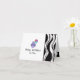Un design moderne avec une bande de zèbre noir et blanc sur le côté de la carte. Petit oiseau tenant des ballons colorés...Les mots peuvent être changés à volonté.
