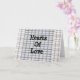Hearts Of Love est un design fantaisiste et ludique qui ne manquera pas de capturer le coeur de quiconque ! Ce design artisanal se compose de rayures roses superposées sur un abstrait de coeurs et de fleurs et de rayures bleues et blanches sur la carte, le tout au milieu d'un motif bleu et blanc !