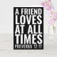 UN AMI AIME EN TOUT TEMPS. PROVERBES 17:17 CARTE DE SALUT. ARRIÈRE - PLAN NOIR. BLANC INTÉRIEUR POUR QUE VOUS PUISSIEZ ÉCRIRE VOTRE PROPRE MESSAGE.