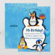 Profitez de votre nouvelle invitation d'anniversaire modifiable avec manchots dans la neige !