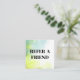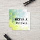 Apportez une touche de couleur et de calme à votre expérience client avec cette carte de référence à l'aquarelle magnifiquement mélangée. Doté de vert doux, de bleu et de jaune, il est le parfait équilibre entre style et professionnalisme. Encouragez les renvois et remerciez vos clients avec une remise de 15% pour le référent et leur ami. Idéal pour les salons, les spas ou toute entreprise d'autosoins qui valorise l'esthétique et la loyauté.