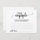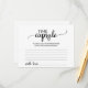 Ces cartes simples de calligraphie noire sont l'activité idéale pour une réception de mariage ou une douche nuptiale rustique ou moderne. Le design minimaliste est doté d'une police de caractères élégante et d'un coeur féminin. Le panneau Consommation Temps Correspondant est vendu séparément.