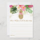 Ces adorables cartes de conseil nuptiale sont une activité de Fête des mariées amusante qui devient un gardien intemporel pour les futurs mariés. Il vous suffit de les faire circuler pendant la Fête des mariées où les clients s'amuseront à les remplir de leurs souhaits et de leurs conseils pour la mariée et le futur marié ! Le design présente des fleurs tropicales d'été avec des confettis de parties scintillant en faux or et un faux ananas en parties scintillant d'or. La coordination de texte rose et or vient compléter le design floral.