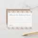 Nos cartes "Conseils pour la mariée et la chambre" sont une activité douce pour avoir une réception de mariage ou une douche nuptiale. Le libellé est entièrement personnalisable. Utilisez l'outil "Personnalisez ce modèle" de Zazzle pour modifier le libellé si vous le souhaitez. N'oubliez pas de consulter notre vaste sélection d'articles de coordination en parcourant la collection Mariage Burlap and Lace !