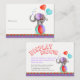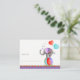 Joli peint à la main d'aquarelle éléphant baby shower d'affichage douche et cartes de marque. Parfait pour vos invités à utiliser comme étiquettes cadeaux pour une douche d'affichage. Original jeu fantasque cirque gris éléphant équilibre sur une boule violette, aqua et rouge, avec ballons aquarelle peinture et design exclusivement par Sarah Trett pour www.mylittleeden.com sur zazzle.