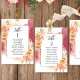 Aidez vos invités à trouver leur table avec cette élégante carte moderne de plan de salon avec des noms de invités avec la pêche exquise et crème floral et tache d'aquarelle bordeaux. Cartes recto verso pour que les clients puissent regarder les deux, avant ou arrière pour voir leurs noms dans des affichages suspendus. Libérez de l'espace tout autour en vous donnant la liberté d'utiliser des clips ou un trou de perforation pour accrocher des écrans, ou d'utiliser le support/cadre de table. Cadre aux délicats détails floraux dans un beau mélange de teintes pêche, orange, rose vif, rose et champagne crème. Détails de calligraphie manuscrite moderne. Plusieurs options de couleur. Ayez tous les numéros de table dans la même couleur ou mélangez les couleurs selon le thème de couleur de votre événement. Une partie de notre collection "Peach Floral Delight with Burgundy" avec une variété de produits de coordination disponibles, y compris des cartes de numéro de table et des menus. Visitez la collection entière à l'adresse suivante : https://www.zazzle.com/collections/peach_floral_delight_with_burgundy-119085236838576621