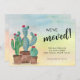 Dites à votre famille et à vos amis que vous avez déménagé dans votre nouvelle maison dans le sud-ouest, ou dans n'importe quel endroit désertique. Cette carte de faire-part mobile unique présente des cactus aquarelles et un arrière - plan coloré avec une typographie élégante. Facile à personnaliser.