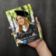 carte faire-part avec police manuscrite pleine saignée photo sur le devant avec le nom et les détails de graduation. Le dos a une deuxième photo avec des détails supplémentaires. Cliquez sur le bouton Modifier pour customiser cette conception.