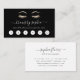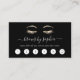 Les cartes de fidélité chic pour les maquilleurs, les esthéticiens, les cils ou les spécialistes du sourcil présentent une paire de cils et de sourcils luxuriants en feuille d'or sur un arrière - plan noir. Ajoutez votre offre de fidélité client avec six cercles punchout et personnalisez le dos avec vos coordonnées.