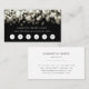 Cartes de fidélité chic pour maquilleurs, esthéticiens, coiffeurs, salons ou spas, avec une bordure supérieure de lumières lumineuses dans les tons blanc et champagne sur un arrière - plan noir croustillant. Ajoutez votre nom d'entreprise et l'offre de fidélité client sous six cercles punchout, et personnalisez le dos avec vos coordonnées.