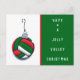 Cartes postales de Noël de volley-ball rouge et vert ornement de volley-ball et message : Avoir un joyeux Noël volley. Ajoutez votre texte pour personnaliser facilement.