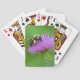 Ces cartes à jouer présentent un bourdon qui ramasse le nectar d'une fleur de chardon violet.