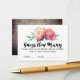 Ces cartes de jeu combien de bisous fleur rustique sont une activité amusante pour une douche de mariée sur le thème floral de campagne. Remplissez un pot avec des baisers de Hersey et demandez à vos invités de deviner combien de bonbons s'y trouvent. La réponse la plus proche gagne un prix ! Le design présente une élégante composition de pivoines aquarelles rose blush avec un fond texturé bois.