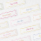 Ces cartes de lieux fantaisistes et minces sont parfaites pour les mariages, les dîners de répétition et les événements amusants et élégants. Conçues avec un cadre courbe dessiné à la main et des polices manuscrites, elles ajoutent une touche personnelle et gaie à tout décor de table. (VEUILLEZ NOTER que vous devrez couper ces cartes en utilisant les lignes de découpe incluses. La taille des cartes coupées sera d'environ 1" de haut x 3,5" de large.)