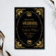 Ces invitations de mariage séduisantes présentent un art moderne et semi-classique. Un cadre orné et doré orné d'art fleuri et ornement décorent un élégant arrière - plan noir onyx foncé pour un look de mariage spectaculaire et vintage.