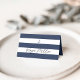 Les cartes de place pliées ou les cartes d'escorte correspondent à notre collection de mariage Nautical Mix et comportent de minuscules illustrations d'ancre bleu marine et un arrière - plan rayé bleu marine et blanc. Personnalisez le dos avec vos noms ou initiales et la date mariage.
