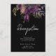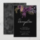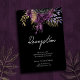 Cartes de réception de mariage floral violet et noir gothique. Feuilles de faux or à feuilles d'or. Police de caractères script mise en valeur avec une police de caractères sérif lisible. Facile à ajuster pour vos propres besoins de mariage. Cartes d'accompagnement de mariage personnalisées.