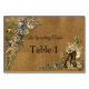 Cartes de mariage gothique - Or et laiton Steampunk sur texture de suède avec un cadre en cuir noir - cartes de numéro et de nom pour chaque table