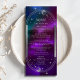 Cosmic Purple Turquoise Silver Sun Moon Stars Mariage Menu Cartes propose un soleil argenté, une lune et des étoiles sur un arrière - plan céleste avec les détails de votre menu au centre dans le script moderne de calligraphie argentée. Personnalisez en modifiant le texte dans les zones de texte fournies. Conçu pour vous par © Evco Studio www.zazzle.com/store/evcostudio