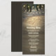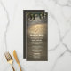 Cartes de menu de mariage Cœurs dans le sable sur la plage - présentent un beau design avec des lumières scintillantes enfilées à travers les palmiers et une plage élégante avec des cœurs de sable que vous pouvez personnaliser pour plus d'unicité. Le design présente également un fond de rivage avec des vagues.
