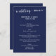 Cartes de menu mariage bleu marine simples avec texte personnalisable
