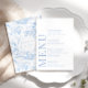 Améliorez votre fête mariage intemporelle avec une carte de menu élégante. Présentant un délicat motif de fleurs blanches et bleues, ce design raffiné est complété par une touche personnalisée - le monogramme de mariée et de mariée sur le dos, créant un élément mémorable et distinctif pour votre journée spéciale.