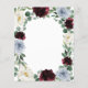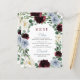 Cartes de menu Mariage de automne Dusty Blue Burgundy Boho - avec une couronne d'eucalyptus et de verdure décorée d'ivoire/blanc, bleu poussiéreux/ardoise/acier et de fleurs bordeaux/canneberges. Affichez la collection correspondante sur cette page pour rechercher des produits de coordination.