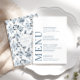 Améliorez le charme de votre célébration mariage moderne romantique avec cette carte de menu sophistiquée et polie. Doté d'un motif complexe orné de fines fleurs bleues et grises poussiéreuses, ce magnifique design est surélevé par la personnalisation, mettant en valeur les noms de la mariée et du marié à l'arrière.