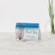 Cartes de Merci de mariage de plage de destination de coquillage avec une plage sablonneuse et un océan à l'arrière-plan. Ajoutez le nom et la date de mariage des jeunes mariés. L'intérieur est vide pour écrire le votre vous remercient.