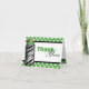 Le baby shower élégant et moderne vous remercient carde conçu avec un biberon de motif d'impression de zèbre au-dessus du pois blanc sur le vert. L'intérieur est coutume imprimée avec votre propre message personnalisé des mercis et signée avec votre nom, ou vous pouvez facilement supprimer le texte de modèle pour laisser au blanc de zone message à l'intérieur pour l'écriture vos sentiments.