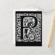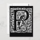 La lettre P sur une carte en gras noir et blanc avec un design tourbillon orné. Il a l'apparence de l'art ancien bloc de bois. Si vous êtes à la recherche d'un design unique et signature pour tous vos besoins de correspondance, vous ne pouvez pas aller mal avec celui-ci. Disponible sur cartes de voeux, cartes pour notes ou cartes postales. Enveloppes incluses avec salutation et carte pour notes (pas d'enveloppes avec cartes postales). À l'intérieur. Acheter en gros pour économiser.