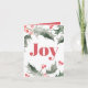 Ces cartes de Noël présentent des couleurs chaudes dans les tons rouge et vert. Le mot "Joy" est mis en caractères rouges gras. Utilisez les champs modèle pour ajouter votre salutation personnalisée. Un choix botanique mais élégant pour la famille et les amis ou pour commander des cartes de fin de année en vrac pour les affaires. Il est aussi disponible dans un fichier imprimable téléchargeable.