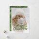 Cartes de Noël personnalisées en vert avec une photo recouverte de neige et une police en écriture manuscrite sur l'avant et fausse feuille verte avec de la neige à l'arrière. Personnalisez facilement ces cartes vertes de Noël avec votre image et votre texte.