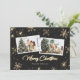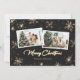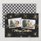 Belle carte de Noël recouverte de buffle blanc et noir avec des flocons de neige brillants et des étoiles avec un titre de calligraphie or et deux photos. Un buffle noir et blanc plaçait l'arrière - plan à l'arrière.
