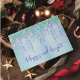 Jolie carte de Noël licorne aqua turquoise iridescente chic et élégante avec fausses paillettes arc-en-ciel qui coulent. Design beau, moderne et cool, magique et mignon avec des étincelles. Personnalisez-la avec votre propre message ou noms, parfait pour les fêtes et la saison de Noël.