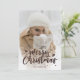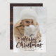 Cartes de Noël en bois rustique personnalisées avec une photo avec un couvert de neige et une police en écriture manuscrite sur l'avant et arrière - plan en bois rustique avec de la neige à l'arrière. Personnalisez facilement ces cartes de Noël rustiques avec votre image et votre nom de famille.