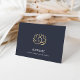 Des notes de remerciement chic ou des cartes pour notes présentent un riche arrière - plan bleu marine orné d'une illustration de fleur de lotus en fausse feuille d'or. Personnalisez avec votre texte personnalisé sous la forme de lettres blanches classiques. Montré avec "namaste" et une deuxième ligne sous pour votre nom, nom commercial ou message personnalisé. Videz à l'intérieur pour votre message manuscrit ; ou ajoutez un message préimprimé personnalisé de votre choix.