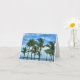 Contre un ciel bleu et blanc marbré, les palmiers tropicaux sont caressés par une brise douce sur une image parfaite après-midi sur une île extérieure des Bahamas.