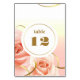 Cartes de numéro de table avec des roses roses élé