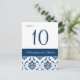 Cartes de numéro de table Blue Mariage damassé