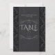 Cartes de numéro de table en damassé noir et gris. Cette carte de table est conçue dans un style gothique gris foncé avec des embellissements en damassé noir. Ce design fait partie de notre collection de mariage Gothic Damask. Conçu par Metro-Events.com