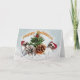 Papillon "bonnes fêtes" carte de voeux comportant deux Papillon minuscule utilisant des casquettes de Père Noël posent contre un contexte neigeux.