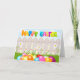 Simplement magnifique carte de Pâques avec couverture montrant "Pâques Joyeuses" dans des couleurs colorées en dégradé, différentes couleurs des oeufs brillants de Pâques, des fleurs, clôture avec des têtes à ongles réalistes. N'hésitez pas à ajouter ou à modifier le message texte fourni.