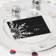 Personnalisez les élégantes Cartes de placement de mariage d'hiver en flocon de neige noir et blanc avec le nom personnel de votre invité et la table à laquelle ils seront assis lors de votre réception de mariage sur le thème de l'hiver décembre, janvier ou février. Ces cartes d'escorte de mariage hivernal festives personnalisées présentent un motif complexe de flocons de neige blancs sur fond noir.